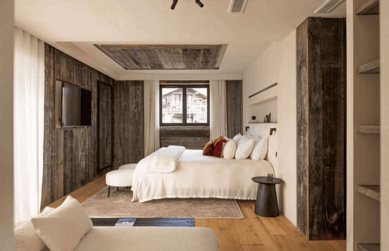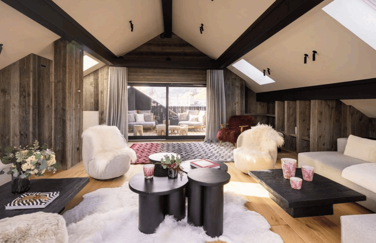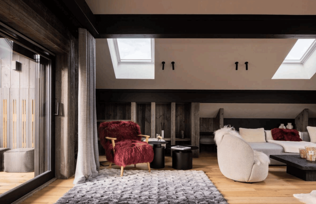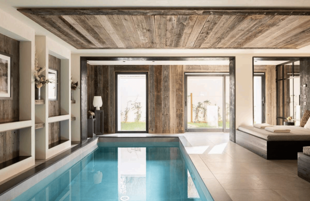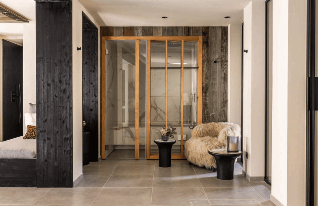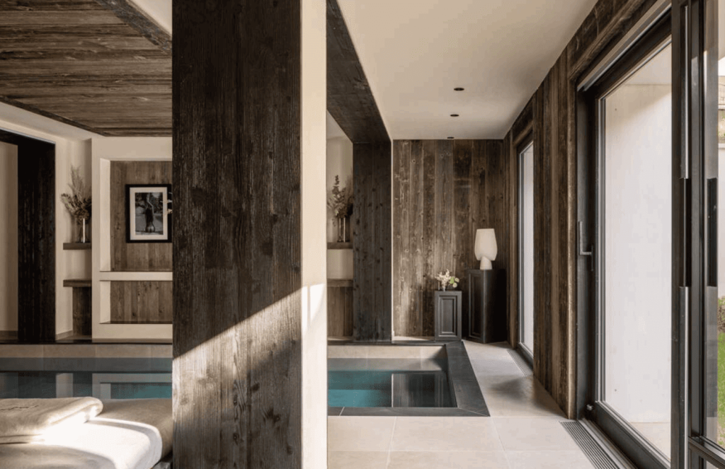 Guests enjoy a dedicated wellness area with a heated indoor pool, hammam and fully equipped fitness room, as well as cozy living spaces with fireplaces and Smart TVs. Just a one‑minute walk from the town center and a short stroll from the ski slopes, the lodge perfectly balances tranquillity and convenience.